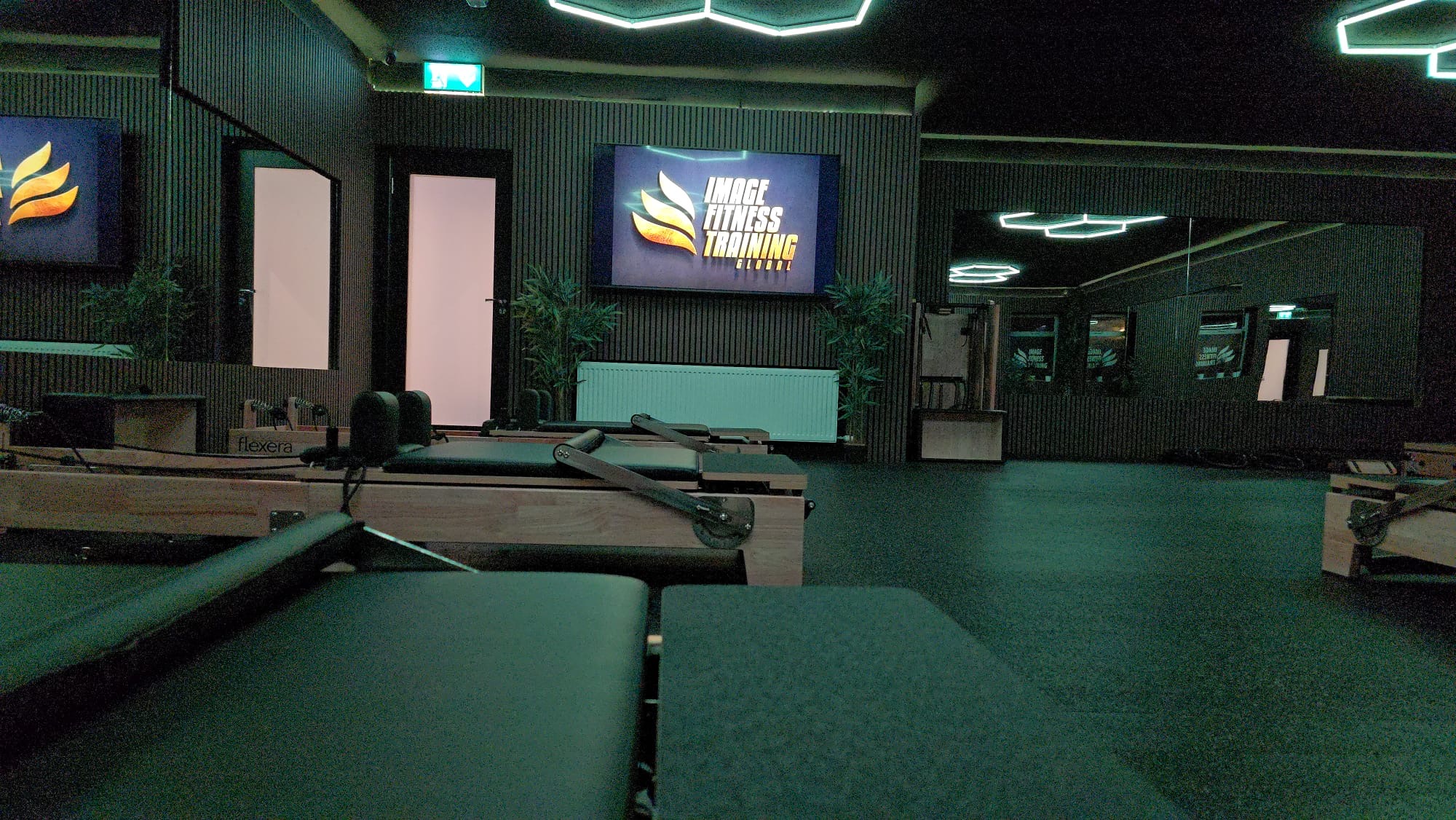 Premium Flexera reformers. Dark-wood slatted walls. A living plant feature. A space built to move in.